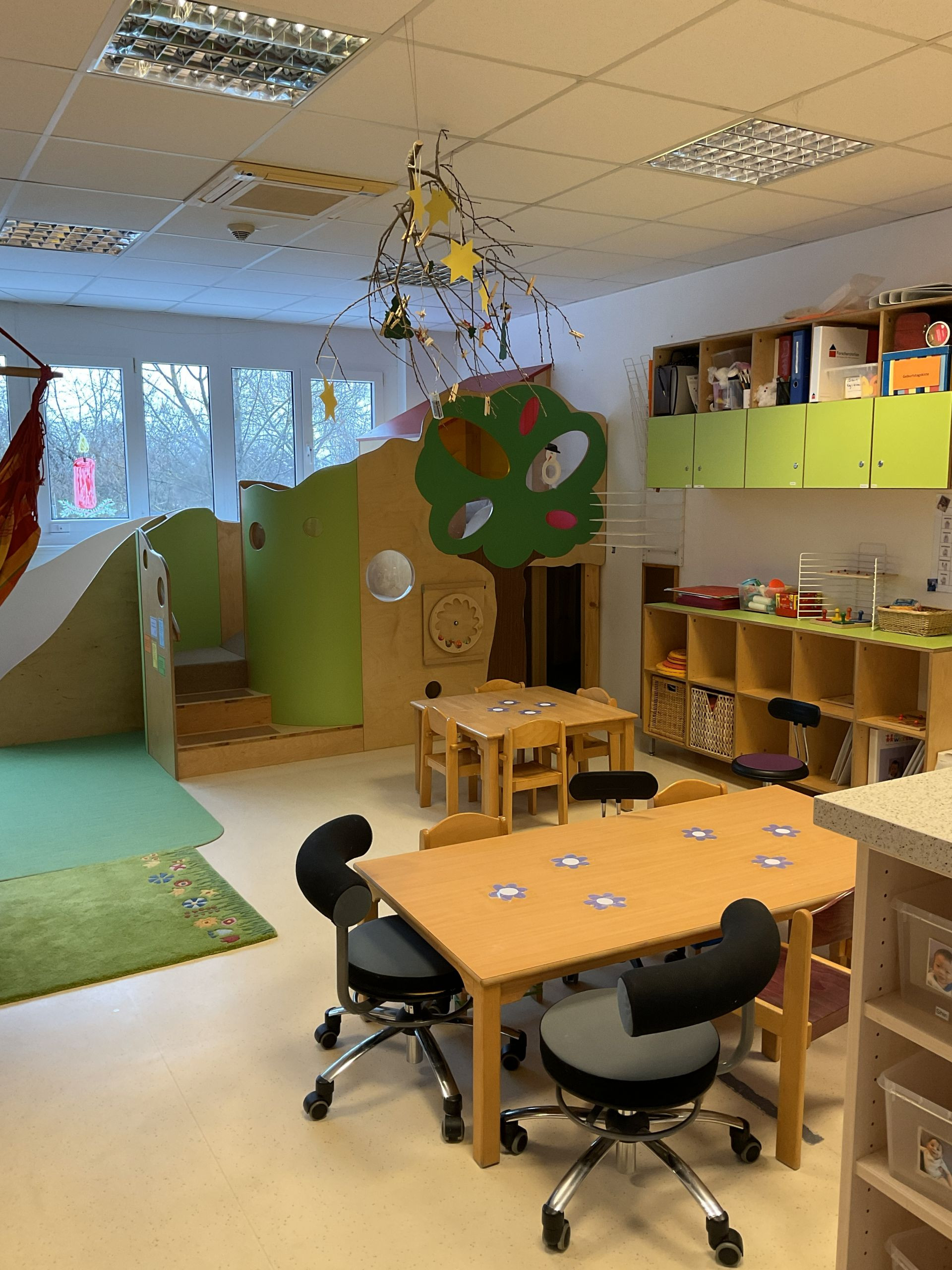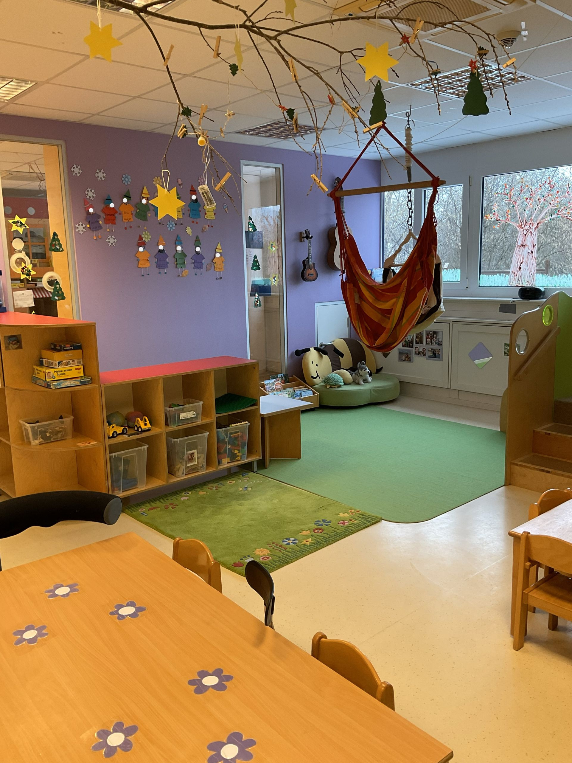 The Purple Group is a nursery group that is characterized by its calm, structured, and clear layout. It offers the youngest children a reliable environment in which they can safely find their bearings and settle in at their own pace. The clear room layout helps the children to recognize routines and develop confidence in their surroundings.